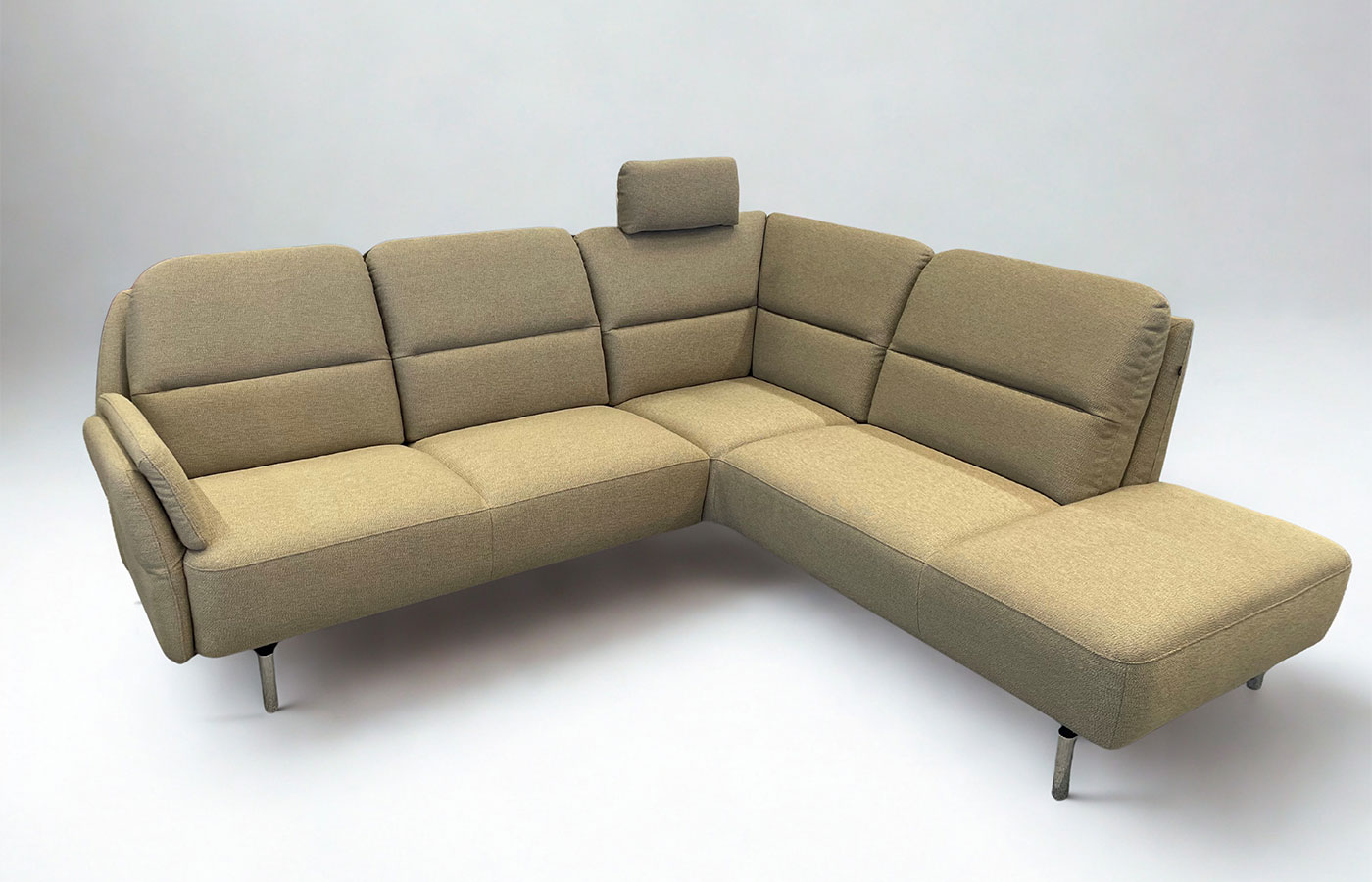 Daria verbindet eine angenehm leichte Optik mit funktionalen Details. Die klaren Formen wirken modern und unaufdringlich, während die variablen Elemente dafür sorgen, dass das Sofa genau zu den eigenen Bedürfnissen passt – ob als kompakte Lösung oder großzügige Wohnlandschaft.