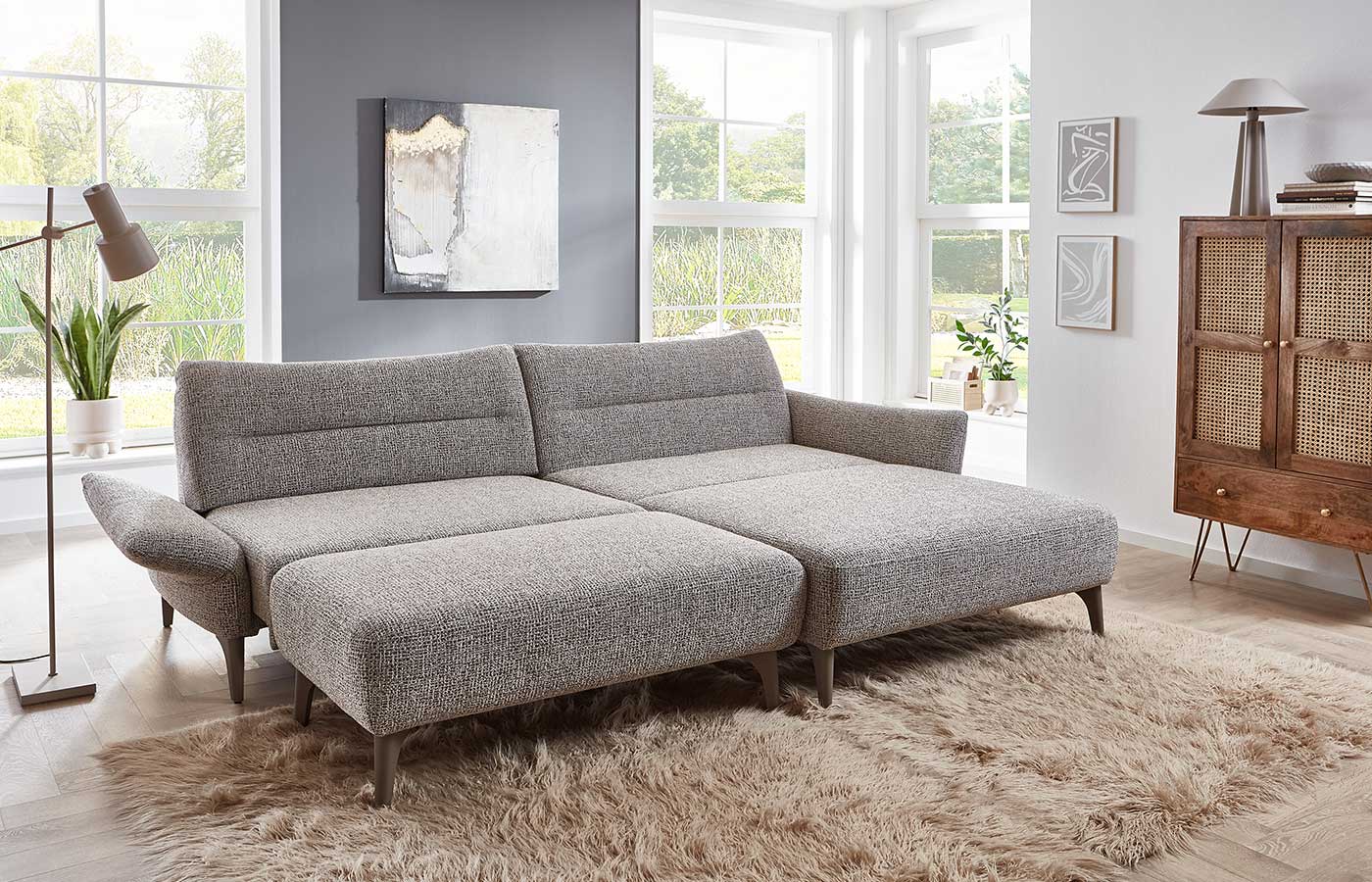Die Polstergruppe Paula verbindet modernes Design mit maximaler Flexibilität. Ihr Highlight ist der elektrisch höhenverstellbare Rücken, der sich per Knopfdruck an Ihre ideale Sitzposition anpasst – ergonomisch, entspannt und jederzeit perfekt abgestützt.