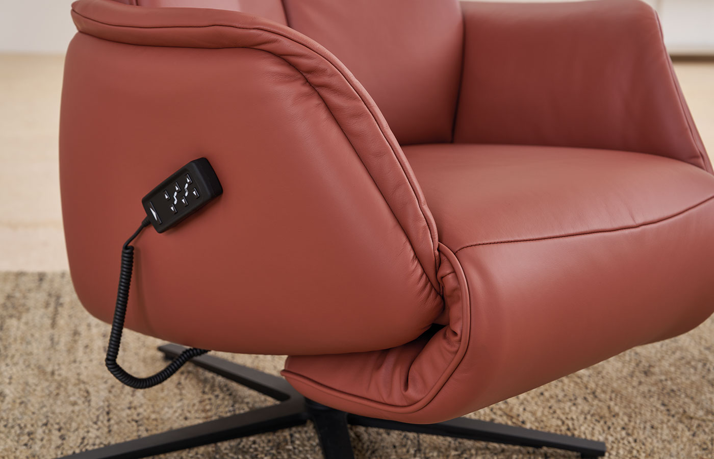 Mit der 3‑Motorik stellen Sie Rücken- und Fußteil unabhängig ein. Optional ergänzen Sie die Herzwaageposition für spürbare Entlastung oder eine Aufstehhilfe für zusätzlichen Komfort.